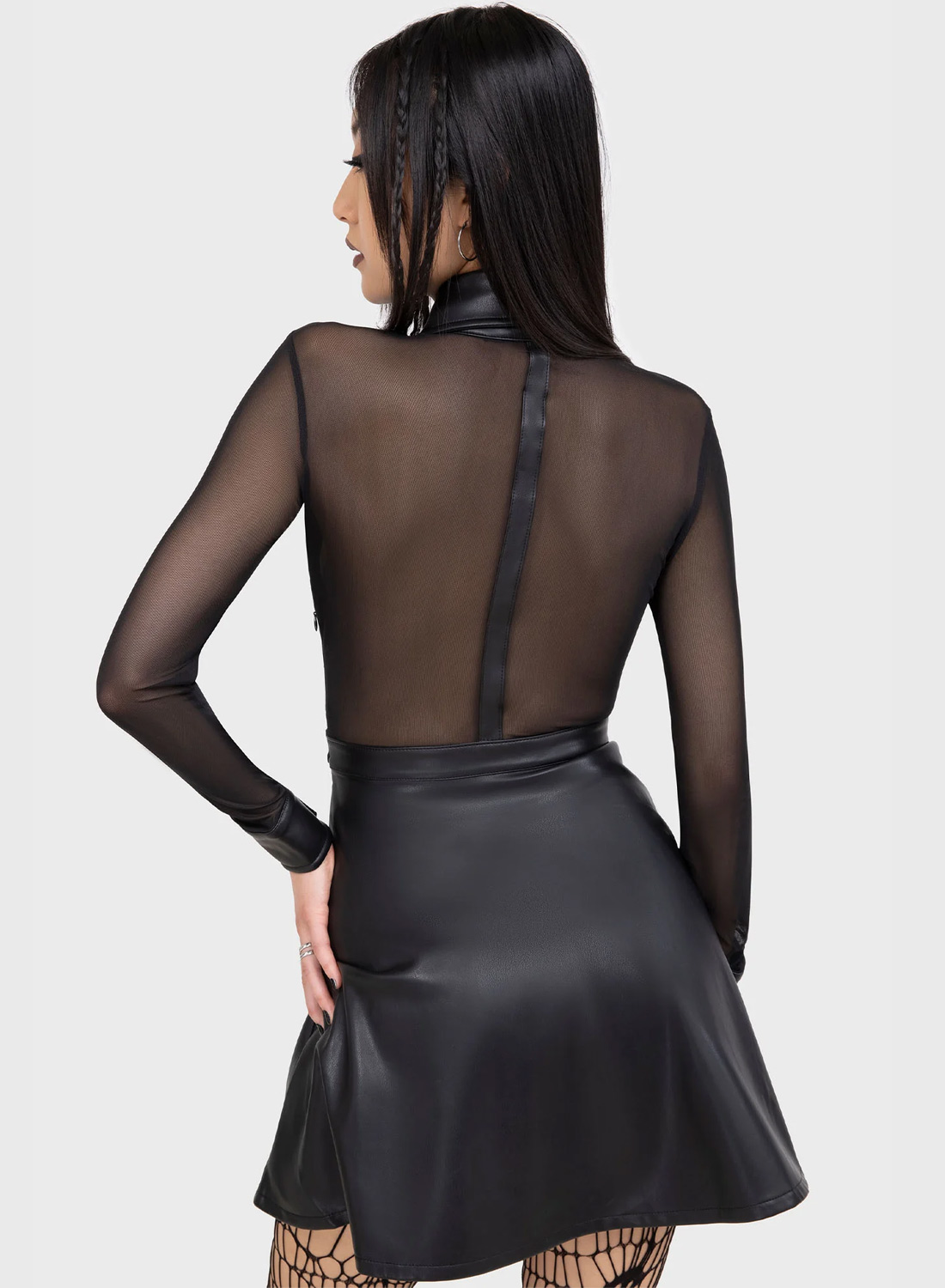 Killstar Shadowsinger Kleid – Mesh & PU-Kleid in taillierter Gothic-Silhouette
