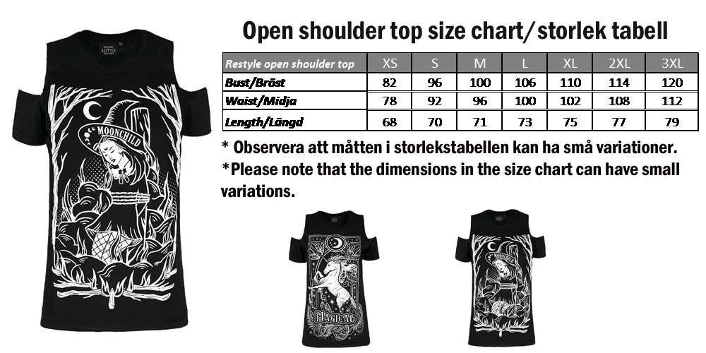 Magical Cold Shoulder Top är en snygg, gotisk öppna axlar topp från Restyle. Regular fit-modell med stort ockult tryck på bröstet.