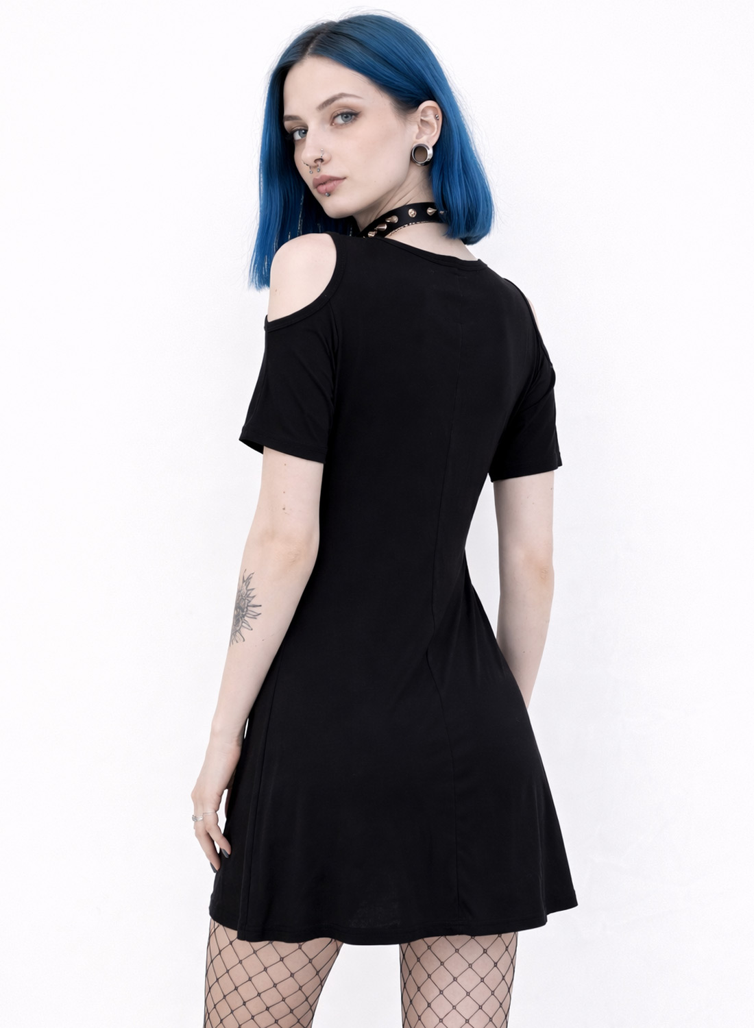 Das Kleid hat einen trendigen Look kalte Schulter- Design, das ein feminines und luftiges Gefühl vermittelt. Auf der Vorderseite ist es mit einem auffälligen Mondphasen-Print verziert, der für einen geheimnisvollen und unkonventionellen Look sorgt, der perfekt für alle ist, die auffallen möchten.